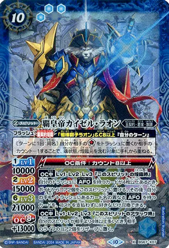 Japanese title: バトルスピリッツ/X/スピリット/契約編:界 第4章 界導 BS67-X07[X]:覇皇帝カイゼル・ラオン