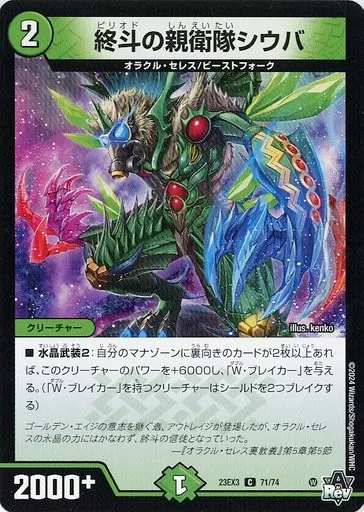 Japanese title: デュエルマスターズ/C/自然/[DM23-EX3]アビス・レボリューション外伝「邪神と水晶の華」 71/74[C]:終斗の親衛隊シウバ