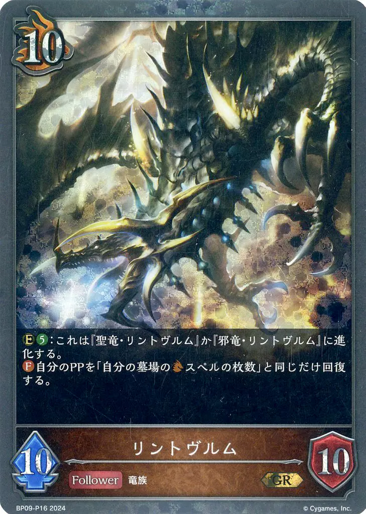 Japanese title: シャドウバース エボルヴ/GR/フォロワー/ブースターパック第9弾「光影の二重奏」 BP09-P16[GR]:(プレミアム)リントヴルム