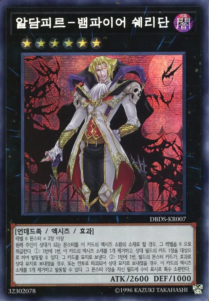 Japanese title: 遊戯王/SE/エクシーズモンスター/韓国版/デッキビルドパック ダーク・セイヴァーズ DBDS-KR007[SE]:交血鬼-ヴァンパイア・シェリダン