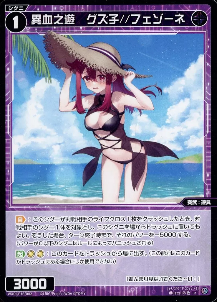 Japanese title: ウィクロス/R/黒/[WXDi-P16]ブースターパック LEGENDARY DIVA WXDi-P16-082[R]:異血之遊 グズ子//フェゾーネ