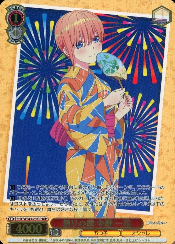 Japanese title: ヴァイスシュヴァルツ/IGP/キャラ/プレミアムブースター 五等分の花嫁∽ 5HY/WE43-28IGP[IGP]:(ホロ)祭りの華 中野 一花