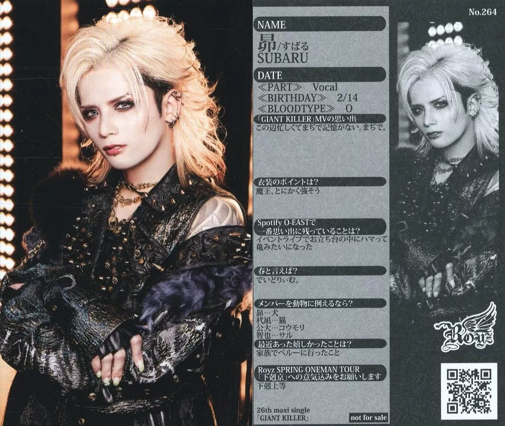 Japanese title: コレクションカード(男性)/CD「GIANT KILLER」封入特典トレーディングカード No.264:Royz/昴/CD「GIANT KILLER」封入特典トレーディングカード