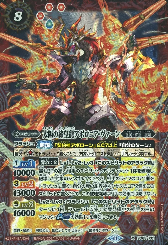 Japanese title: バトルスピリッツ/X/スピリット/メガデッキ 太陽神の顕現[SD68] SD68-X01[X]:太陽の締皇龍アポロニア・ヴァーン