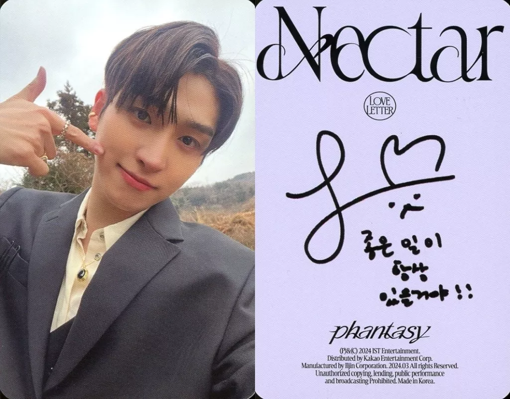 Collection Card (Male) / CD "Phantasy _ Pt. 3 Love Letter" (Send Ver.) photo card The Boyz / SANGYEON / Back Purple / Printed with signature / "Nectar" / CDs "Phantasy _ Pt. 3 Love Letter" (Send Ver.) photo card