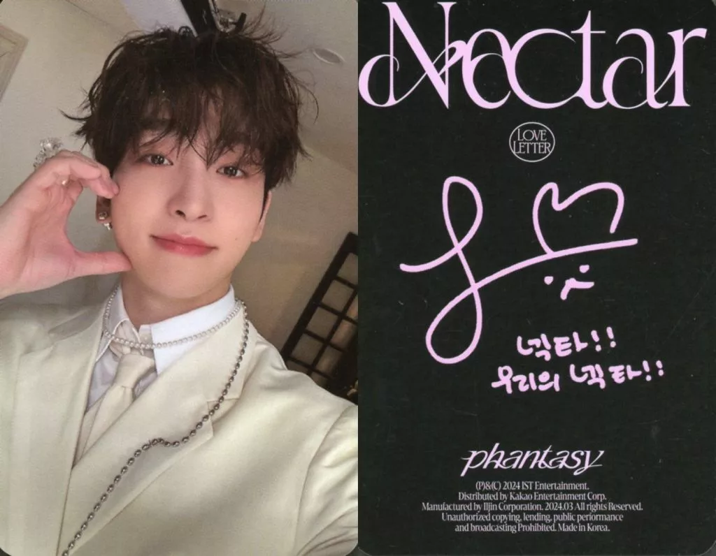 The Boyz / SANGYEON / Back Black / Printed with signature / "Nectar" / CDs "Phantasy _ Pt. 3 Love Letter" (Send Ver.) photo card