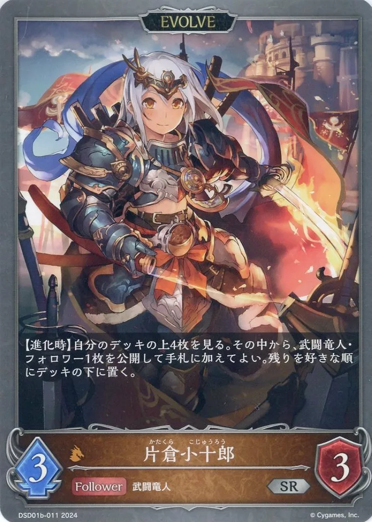 Japanese title: シャドウバース エボルヴ/SR/フォロワー・エボルヴ/DXスターターデッキ「学院に咲く双華」「武なる雷鳴」 DSD01b-011[SR]:片倉小十郎