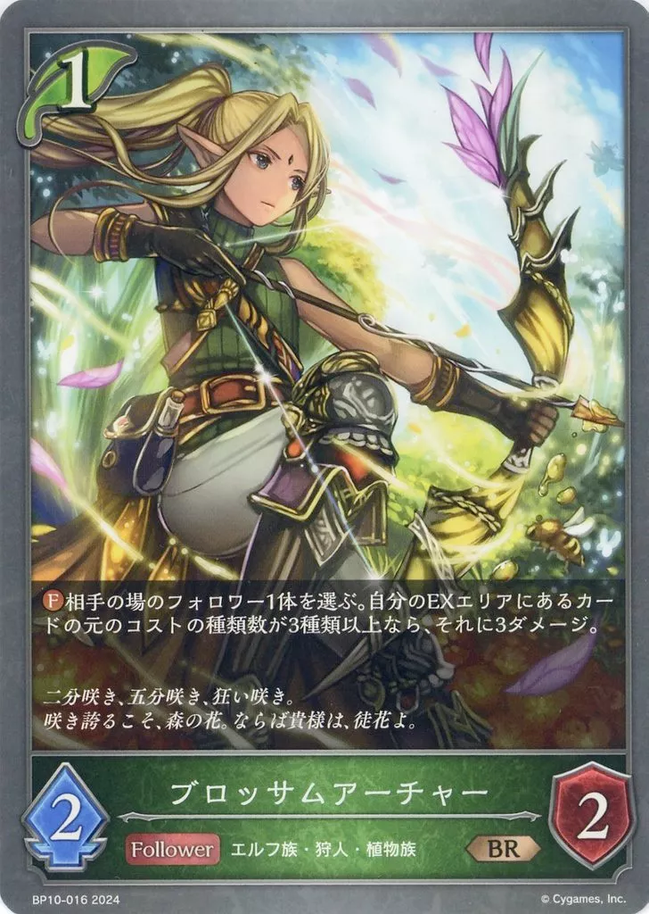 Japanese title: シャドウバース エボルヴ/BR/フォロワー/ブースターパック第10弾「Gods of the Arcana」 BP10-016[BR]:ブロッサムアーチャー