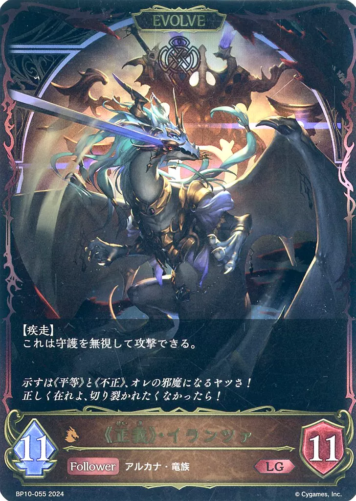 Japanese title: シャドウバース エボルヴ/LG/フォロワー・エボルヴ/ブースターパック第10弾「Gods of the Arcana」 BP10-055[LG]:<<正義>>・イランツァ