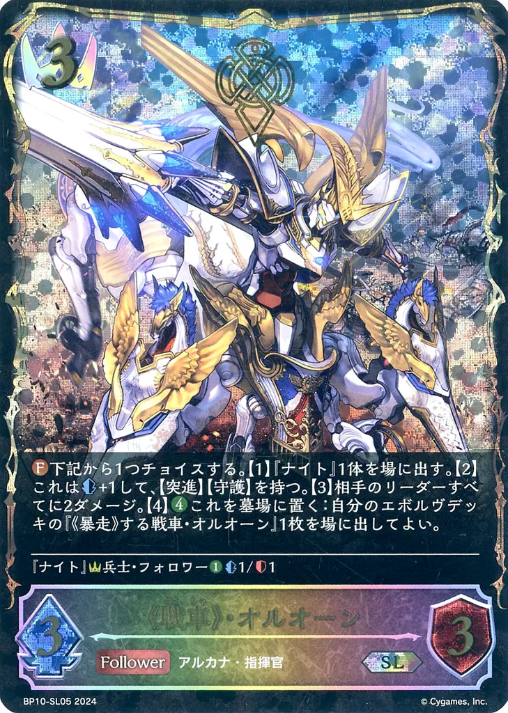 Japanese title: シャドウバース エボルヴ/SL/フォロワー/ブースターパック第10弾「Gods of the Arcana」 BP10-SL05[SL]:<<戦車>>・オルオーン