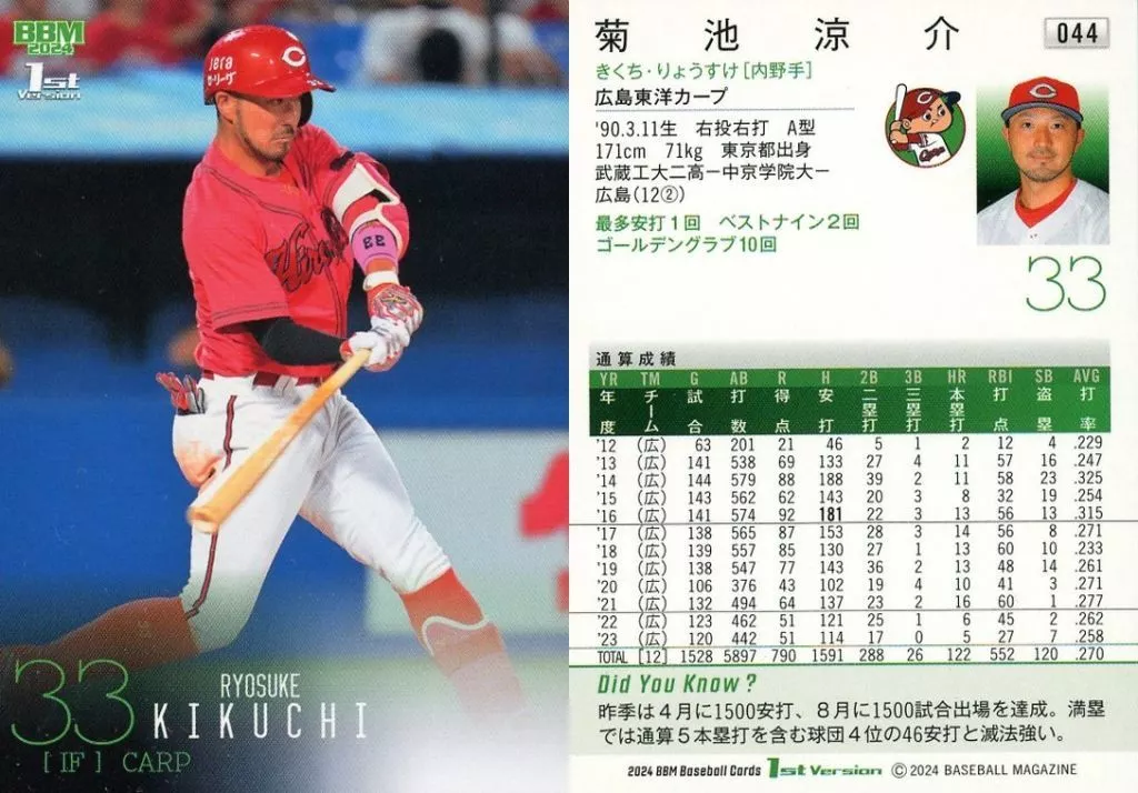 BBM / Regular Card / 2024 BBM Baseball Card 1st Version 044 [Regular Card] : Ryosuke Kikuchi