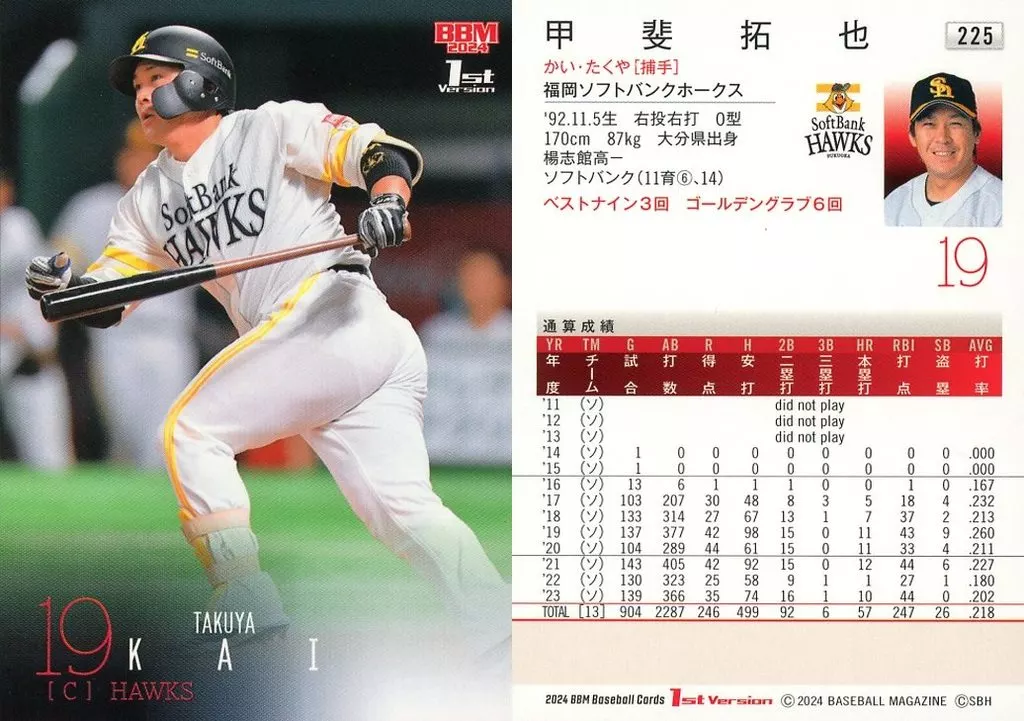 Japanese title: BBM/レギュラーカード/2024 BBM ベースボールカード 1stバージョン 225[レギュラーカード]:甲斐拓也
