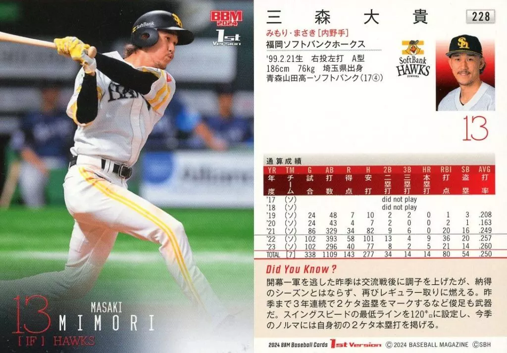 Japanese title: BBM/レギュラーカード/2024 BBM ベースボールカード 1stバージョン 228[レギュラーカード]:三森大貴