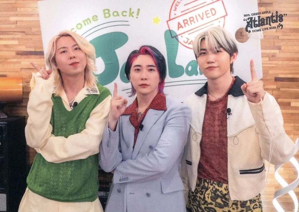 Japanese title: コレクションカード(男性)/「Mrs. GREEN APPLE DOME LIVE 2023 ”Atlantis”」MGA Special Photo Card Set “Atlantis” フォトカード 044:Mrs. GREEN APPLE/集合(3人)/「Mrs. GREEN APPLE DOME LIVE 2023 ”Atlantis”」MGA Special Photo Card Set “Atlantis” フォトカード