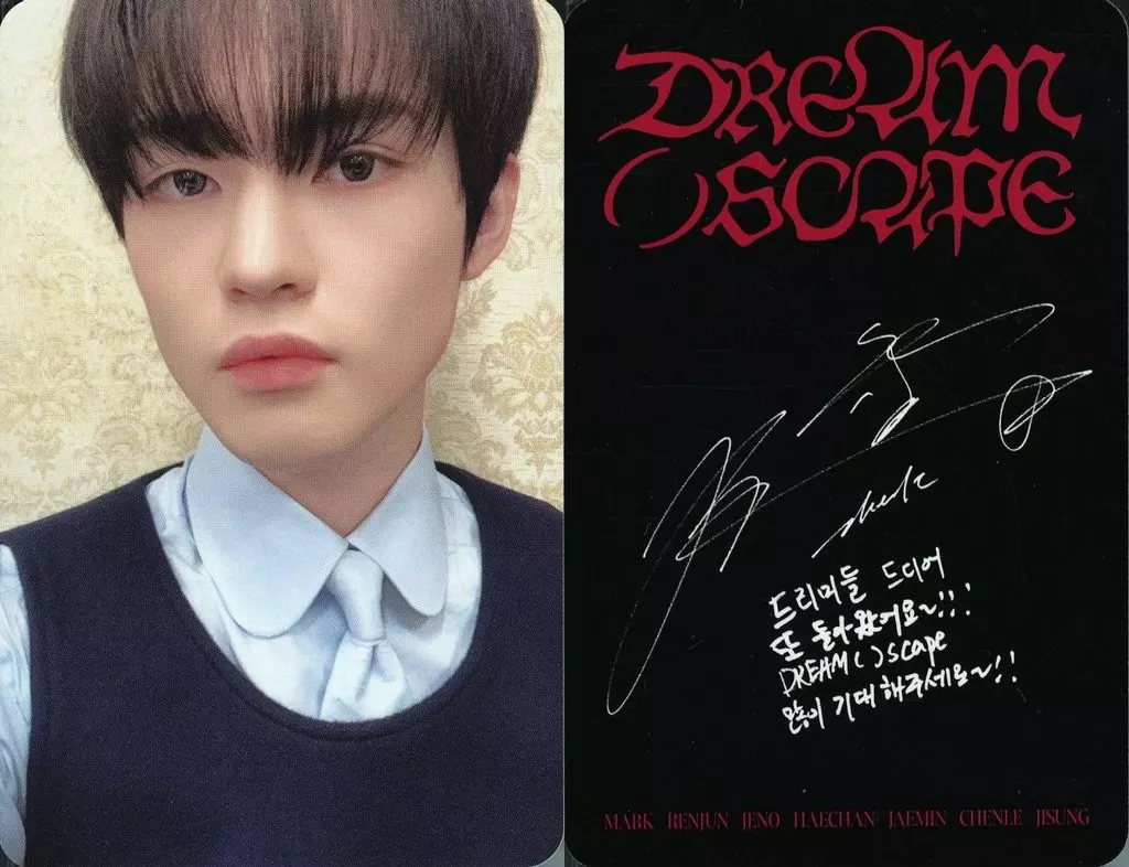 Japanese title: コレクションカード(男性)/CD「DREAM( )SCAPE」(Photobook/icanfeelanything Ver.)封入フォトカード NCT DREAM/チョンロ(Chenle)/裏面印刷サイン・メッセージ入り/CD「DREAM( )SCAPE」(Photobook/icanfeelanything Ver.)封入フォトカード