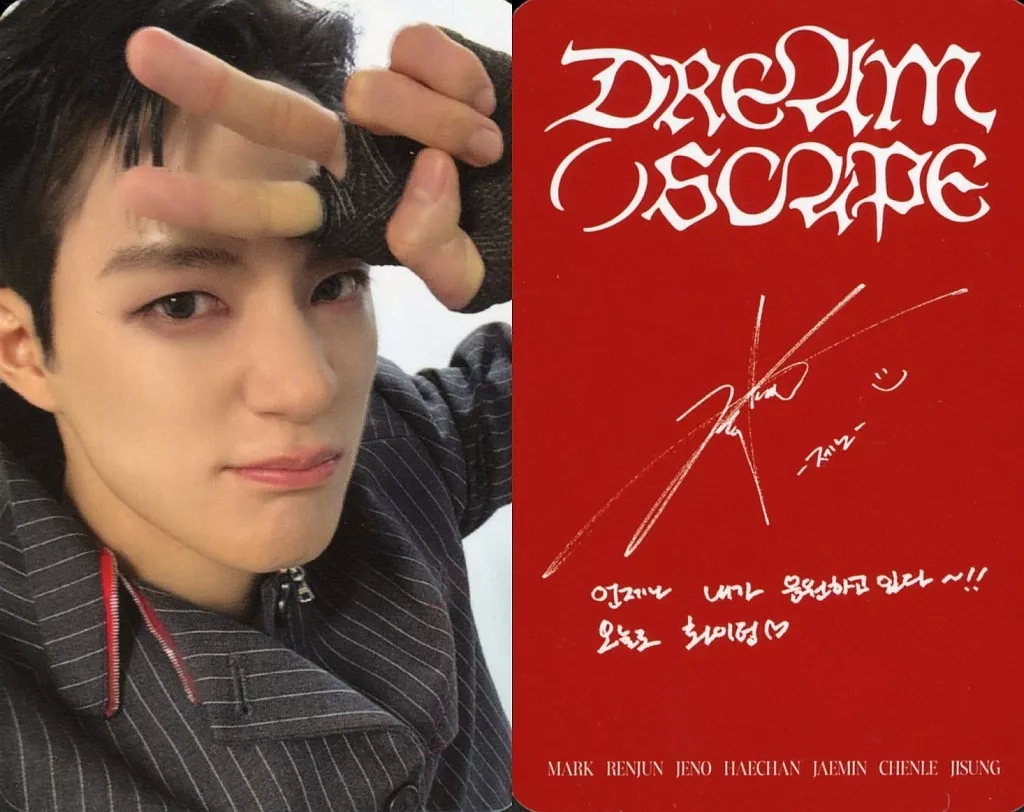 Japanese title: コレクションカード(男性)/CD「DREAM( )SCAPE」(QR Ver.)封入フォトカード NCT DREAM/ジェノ(Jeno)/裏面印刷サイン・メッセージ入り/CD「DREAM( )SCAPE」(QR Ver.)封入フォトカード