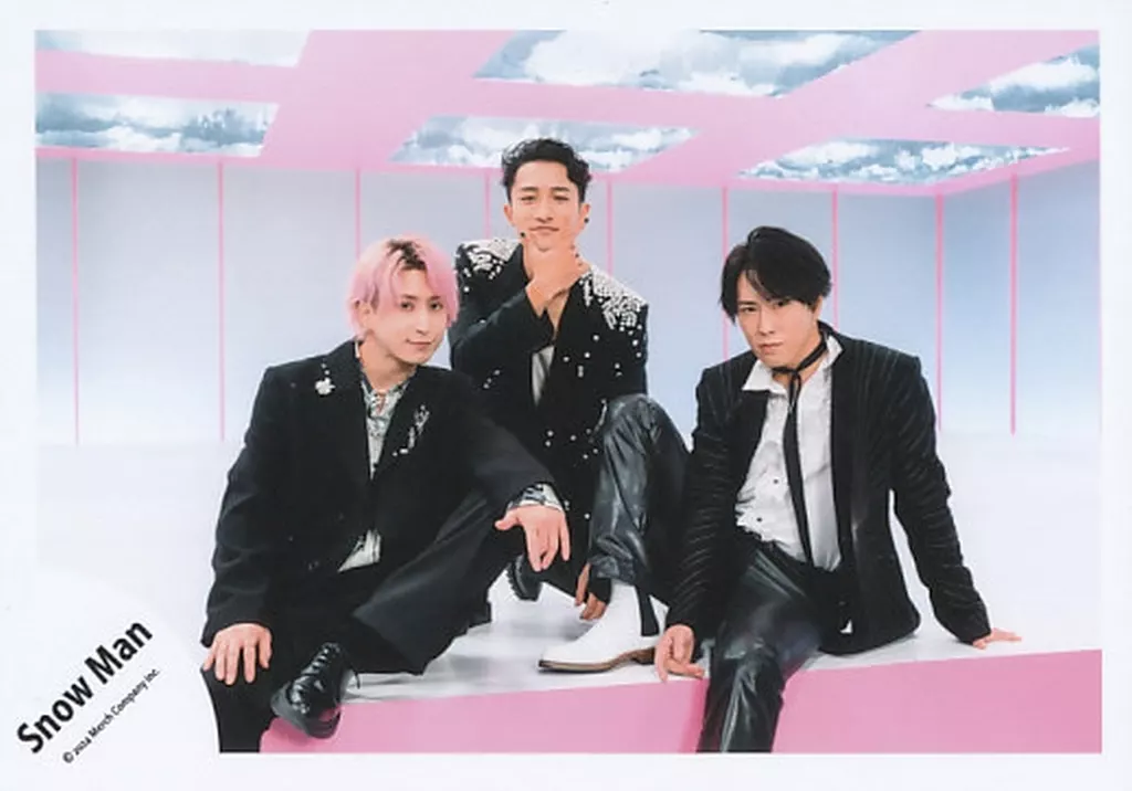 Japanese title: 生写真(STARTO)/アイドル/Snow Man Snow Man/岩本照・宮舘涼太・佐久間大介/横型・膝上/シングル「LOVE TRIGGER / We’ll go together」MV&ジャケ写オフショット/公式生写真