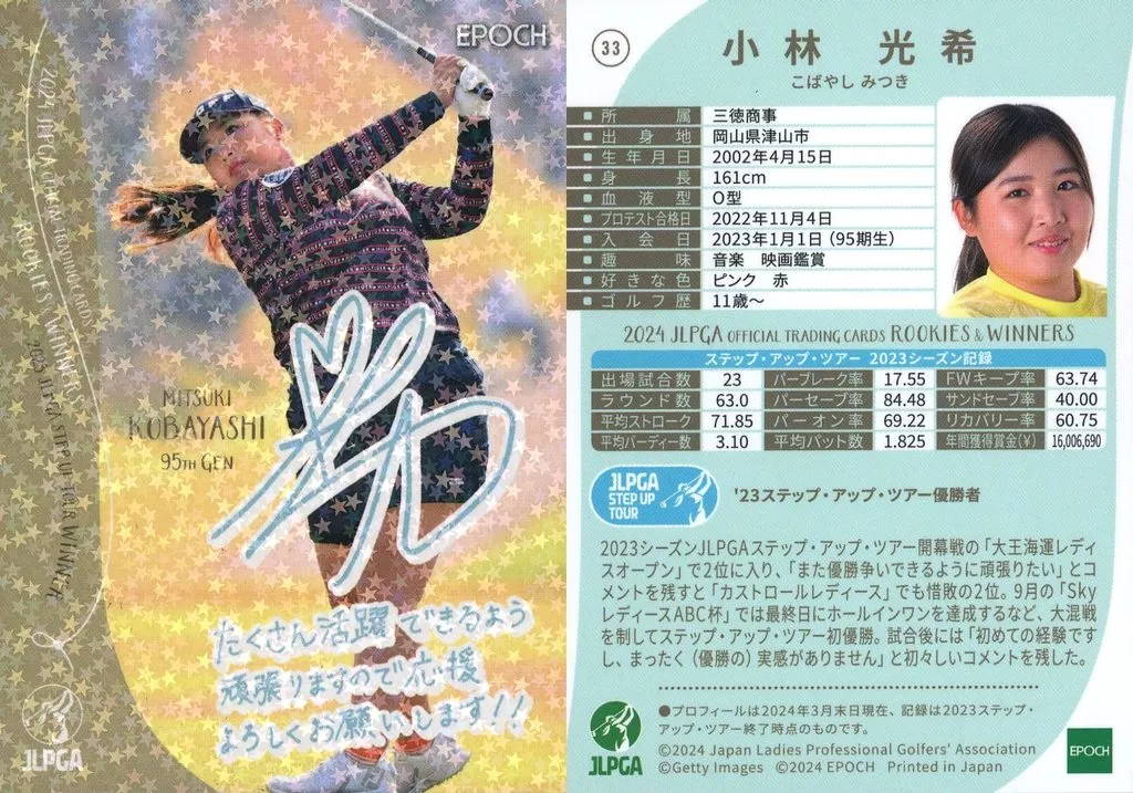 Japanese title: スポーツ/レギュラーカード/EPOCH 2024 JLPGA OFFICIAL TRADING CARDS ROOKIES & WINNERS 33[レギュラーカード]:小林 光希(ホログラム版)