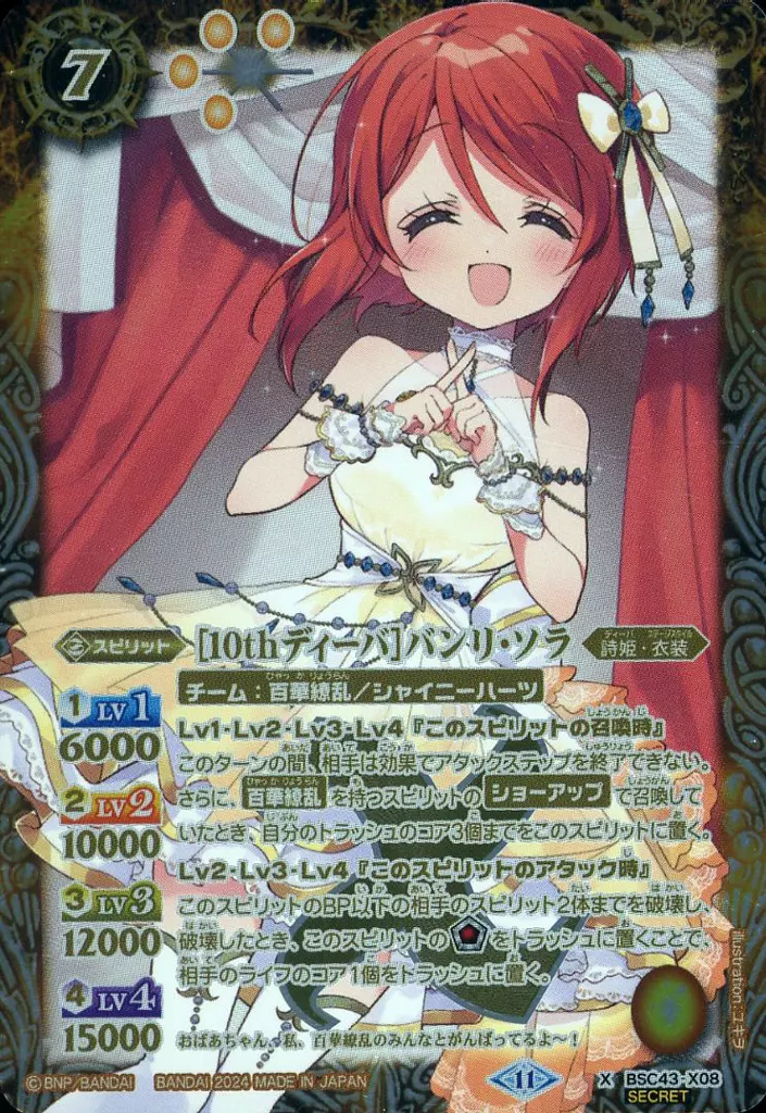 Japanese title: バトルスピリッツ/X/スピリット/ディーバブースター 10thパーティー BSC43-X08[X]:[10thディーバ]バンリ・ソラ(SECRET)