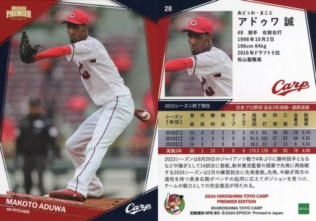 Japanese title: スポーツ/レギュラーカード/2024 広島東洋カープ PREMIER EDITION ベースボールカード 28[レギュラーカード]:アドゥワ 誠