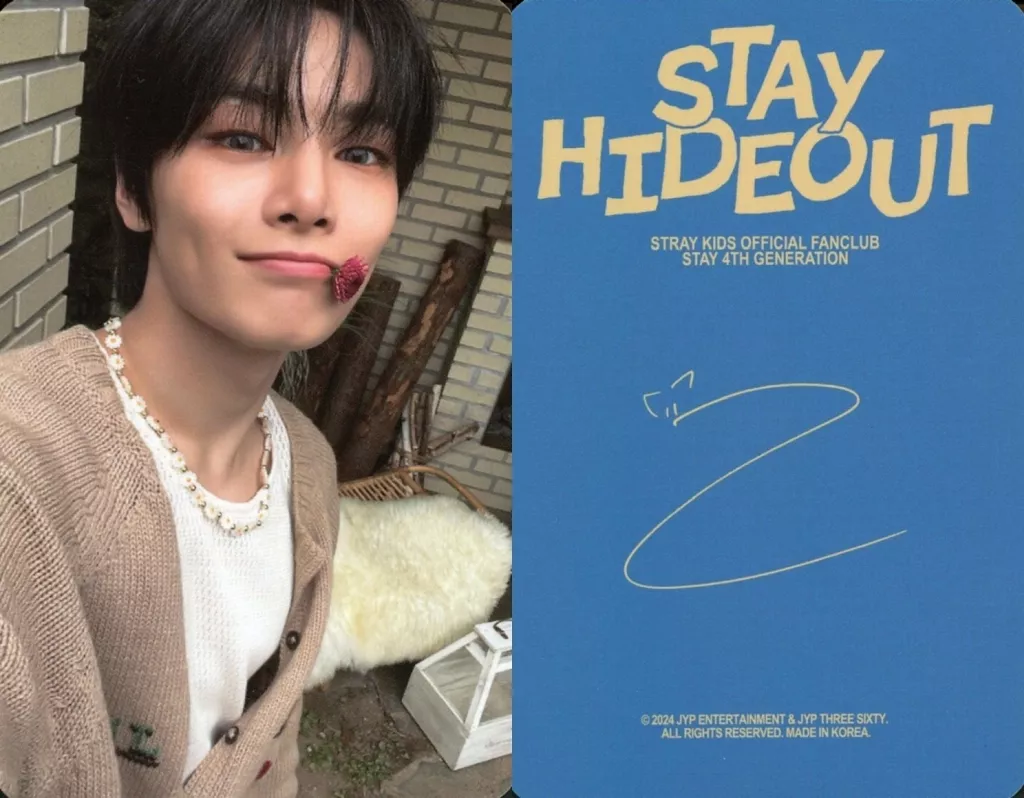 Japanese title: コレクションカード(男性)/「Stray Kids Official Fanclub STAY 4th Generation STAY HIDEOUT」Kit封入フォトカード Stray Kids/アイエン(I.N)/裏面青・印刷サイン入り/「Stray Kids Official Fanclub STAY 4th Generation STAY HIDEOUT」Kit封入フォトカード