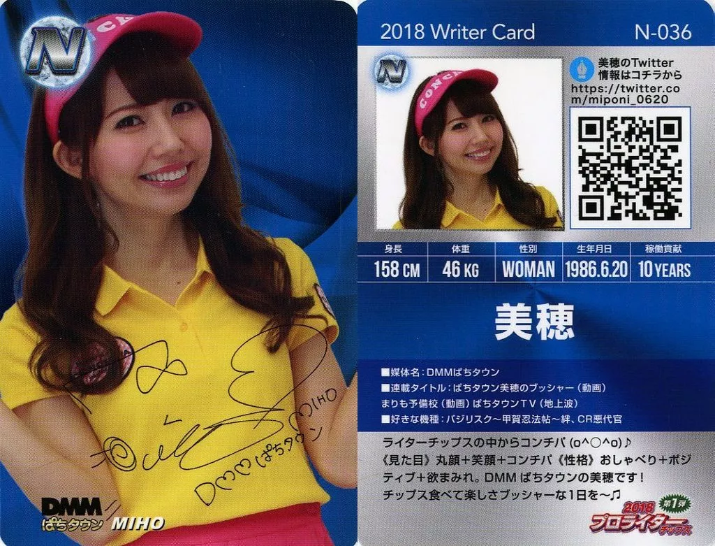 Japanese title: コレクションカード(女性)/プロライターチップス 第1弾 N-036[ノーマル]:美穂/印刷サイン入り/プロライターチップス 第1弾