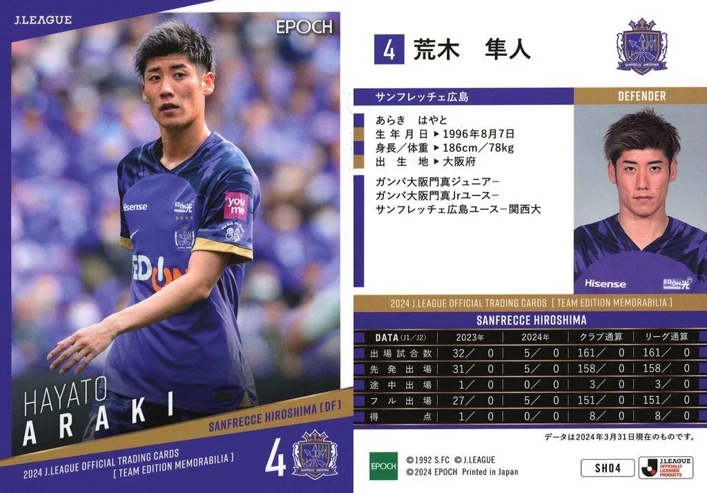 Japanese title: スポーツ/レギュラーカード/2024 Jリーグオフィシャルトレーディングカード [チームエディション・メモラビリア] サンフレッチェ広島 SH04[レギュラーカード]:荒木隼人