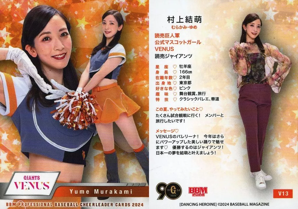 Japanese title: BBM/レギュラーカード/BBM2024 プロ野球チアリーダーカード DANCING HEROINE V13[レギュラーカード]:村上結萌