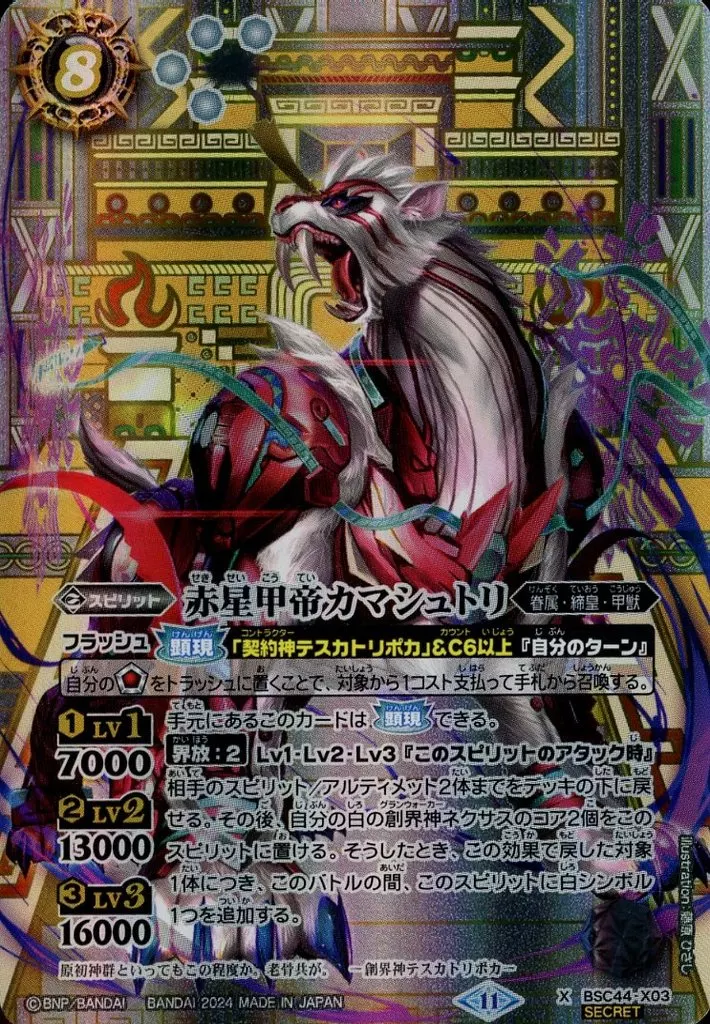 Japanese title: バトルスピリッツ/X/スピリット/テーマブースター AGE OF AVENGERS BSC44-X03[X]:赤星甲帝カマシュトリ(SECRET)