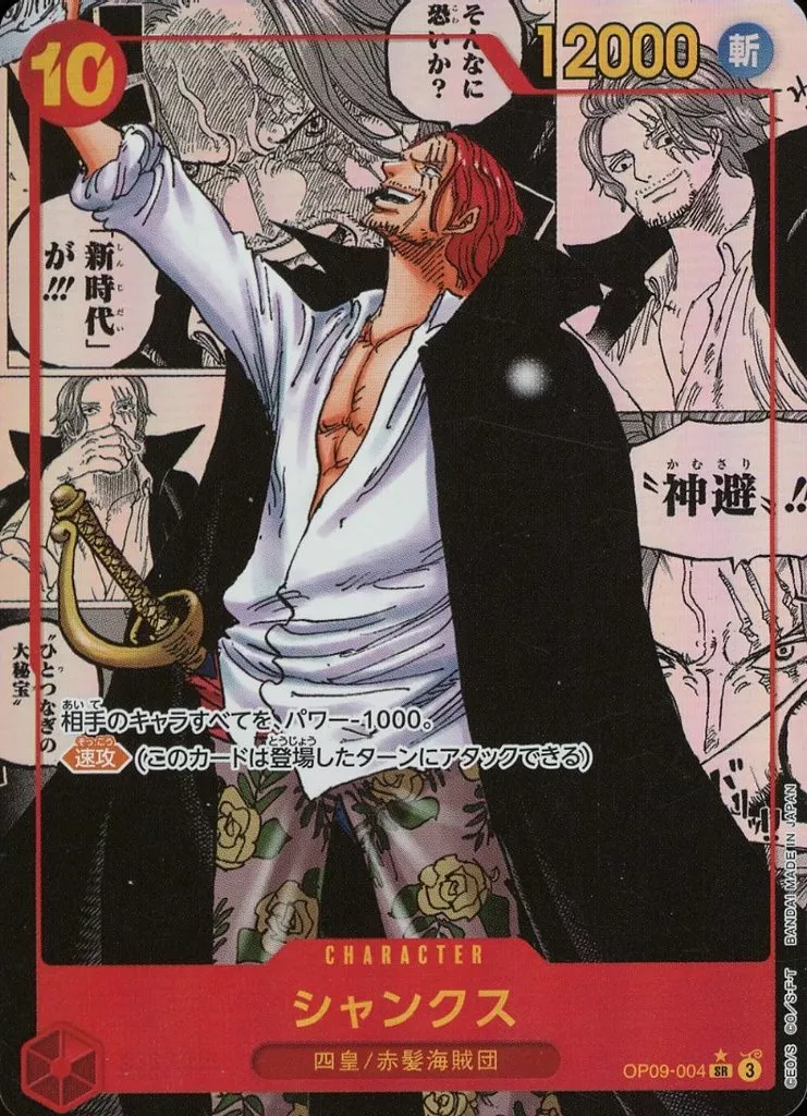 Japanese title: ONE PIECEカードゲーム/SR/CHARACTER/新たなる皇帝【OP-09】 OP09-004[SR]:(スーパーパラレル)シャンクス