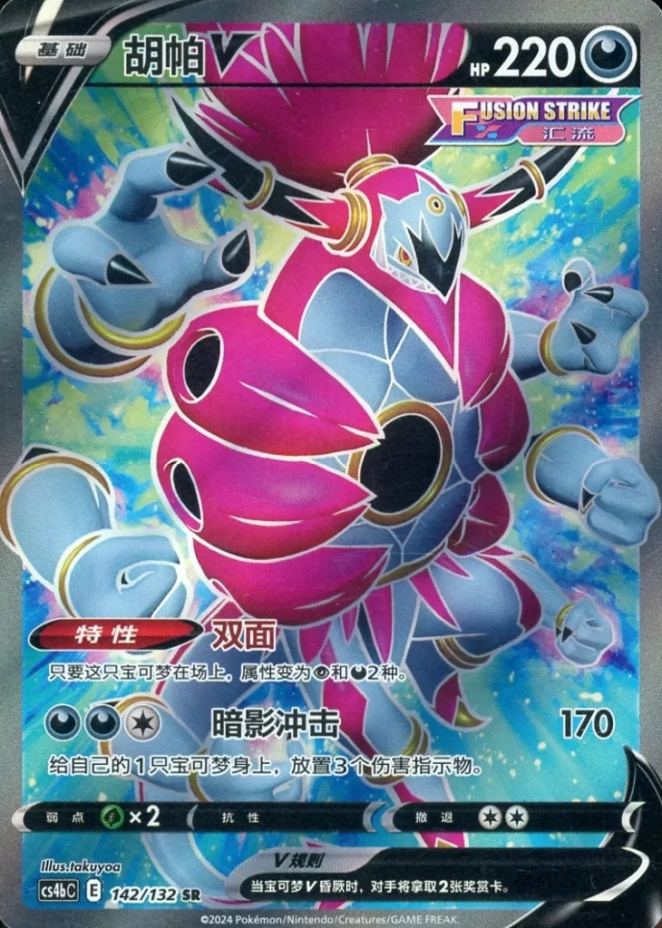 Japanese title: ポケモンカードゲーム/SR/水/簡体字中国語版/ソード&シールド ブースターパック 九彩匯聚 源 142/132[SR]:(キラ)フーパV