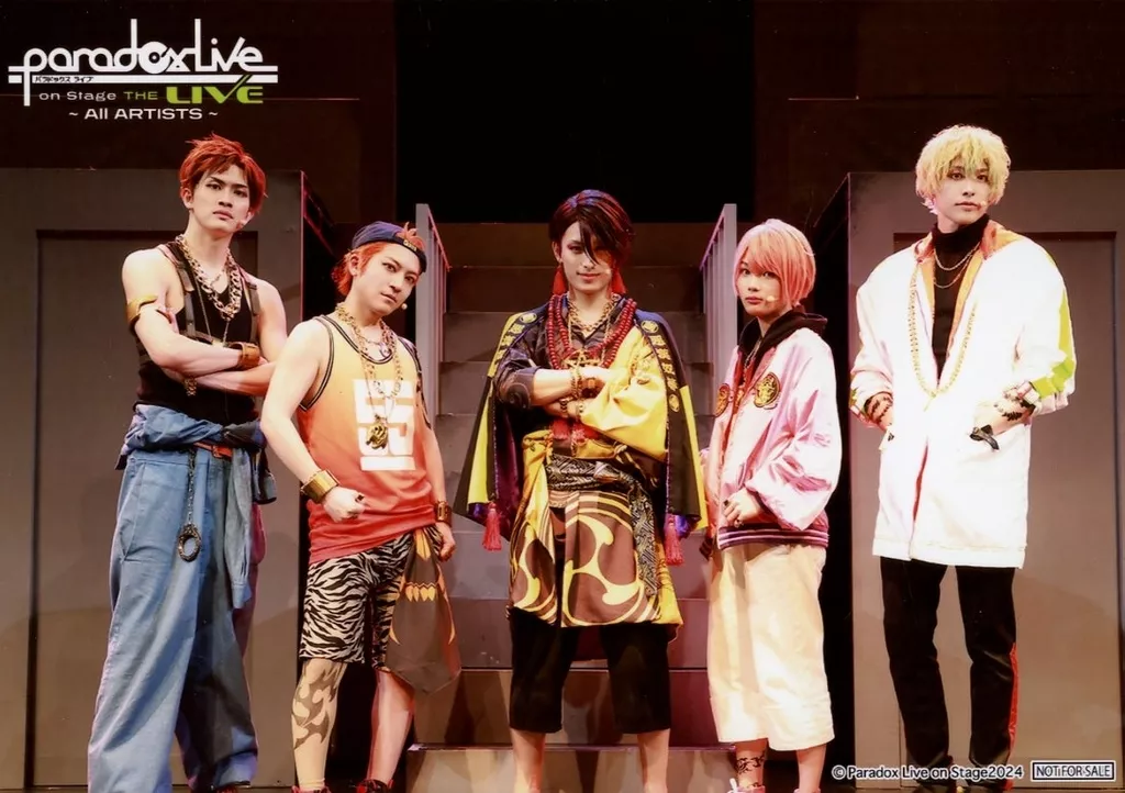 Japanese title: 生写真(男性)/俳優 武子直輝(翠石依織)・川上将大(雅邦善)・稲垣成弥(征木北斎)・小林竜之(伊藤紗月)・神越将(円山玲央)/横型・キャラクターショット/悪漢奴等/「Paradox Live on Stage THE LIVE ~All ARTISTS~」グッズ購入特典ブロマイド