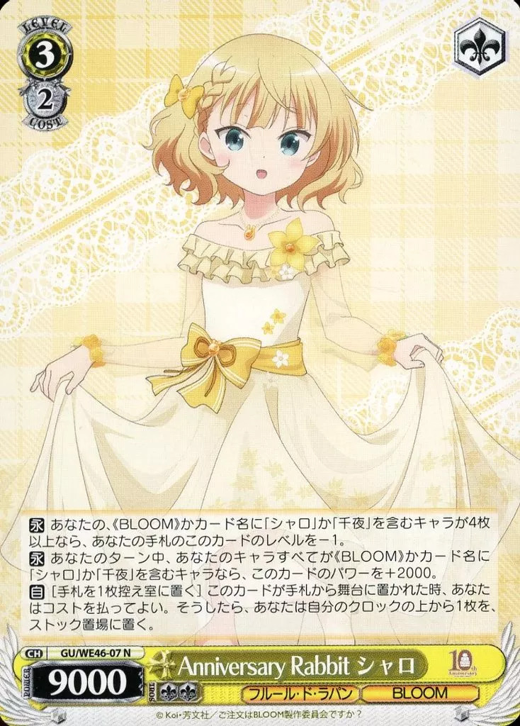 Japanese title: ヴァイスシュヴァルツ/N/キャラ/プレミアムブースター TVアニメ「ご注文はうさぎですか?」10th Anniversary GU/WE46-07[N]:Anniversary Rabbit シャロ