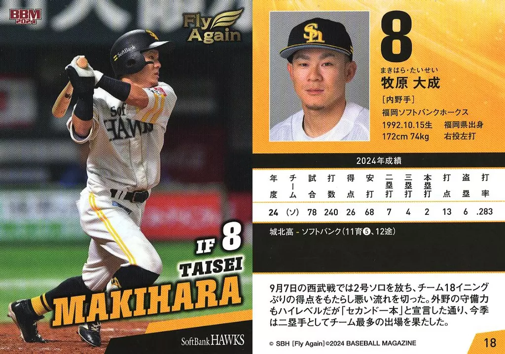 Rareness : Regular Card Series : BBM Fukuoka Soft Bank Hawks Winning Card Set 2024 - Fly Again -