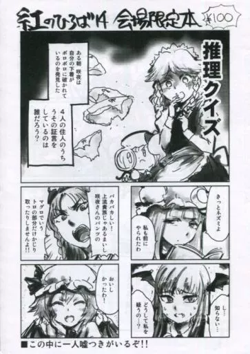 Japanese title: 男性向一般同人誌 東方 【コピー誌】紅のひろば 14 会場限定本 / 水兎火鳥 パチュリー、十六夜咲夜、チルノ