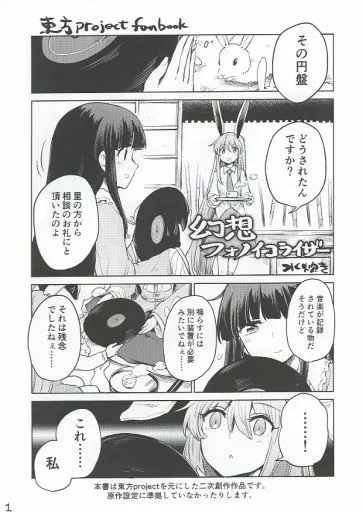 Japanese title: 男性向一般同人誌 東方 幻想フォノイコライザー / 水炊き 蓬莱山輝夜、うどんげ