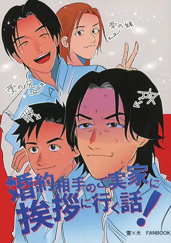 Japanese title: 女性向け一般同人誌(BL含む) その他アニメ・漫画 婚約相手のご実家に挨拶に行く話! / どんがばちょふ 沢辺雪祈×宮本大