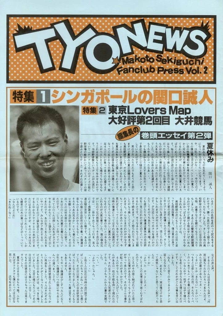 Masato Sekiguchi Fan Club Proceedings TYO NEWS VOL. 2