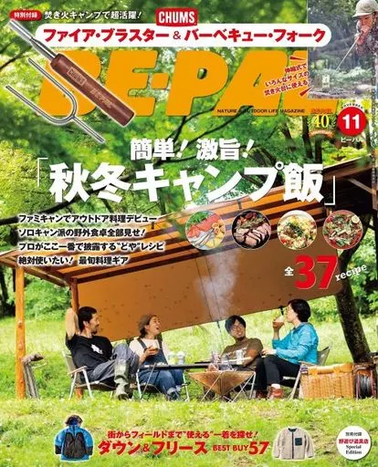 別冊付録:1)CHUMSファイアブラスター&BBQフォーク、2)小冊子/簡単!激旨!秋冬キャンプ飯