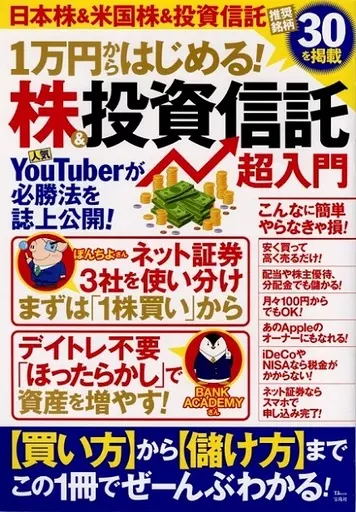 TJ MOOK / With a time deposit interest rate of around 0.01%, the know-how of asset management through the use of stocks and investment trusts has become essential knowledge for everyone. This magazine is the "first time investment introduction guide" for beginners and beginners of investment. It explains the basics such as why money increases when you invest, how to open an account, how to use NISA and iDECo as the most suitable entrance, investment trusts investment trusts and individual stock investment in Japan and US. Let's move into the world of investment with this magazine as a navigator!