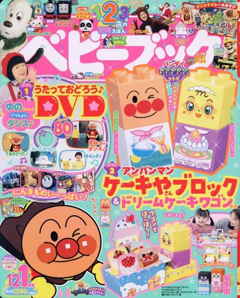 DVD付/別冊付録:1)アンパンマン&メロンパンナケーキ屋ブロック&ドリームケーキワゴンセット、2)小冊子/綴込付録:シール特集:アンパンマンプレゼントをくばろう、いなばあっ!どうぶつえん、シナぷしゅおえかき