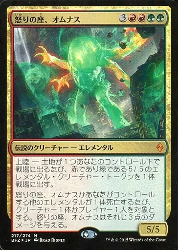 Japanese title: マジックザギャザリング/日本語版FOIL/神話R/戦乱のゼンディカー/マルチカラー [神話R]:【FOIL】怒りの座、オムナス/Omnath, Locus of Rage