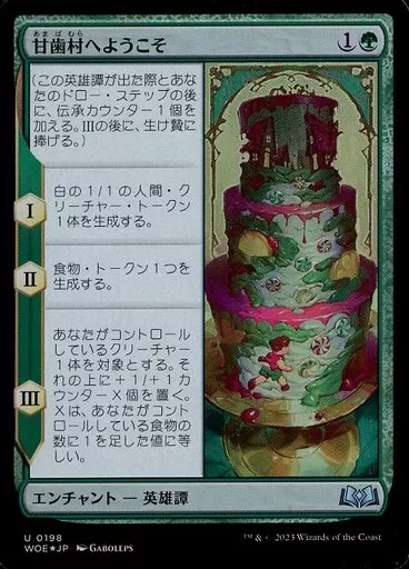 Japanese title: マジックザギャザリング/日本語版FOIL/U/緑/エルドレインの森 0198[U]:【WOE】【FOIL】甘歯村へようこそ/Welcome to Sweettooth