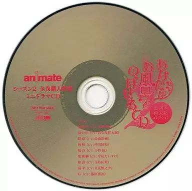 Nombre comercial en japonés: アニメ系CD ドラマCD あなたがお風呂で のぼせるCD -温泉擬人化コレクション- シーズン2 全巻購入特典 ミニドラマCD(アニメイト特典)