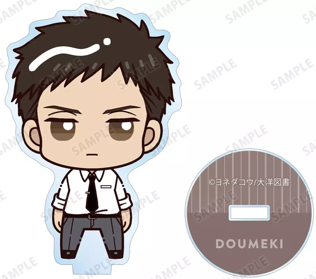 El soporte acrílico tiene una imagen de un pequeño Character parado.