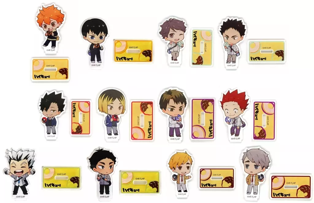 Explicación del artículo : Este artículo es un conjunto de 12 tipos de "ministand acrílico aleatorio" de "Haikyu!!! x Jack In The Donut".