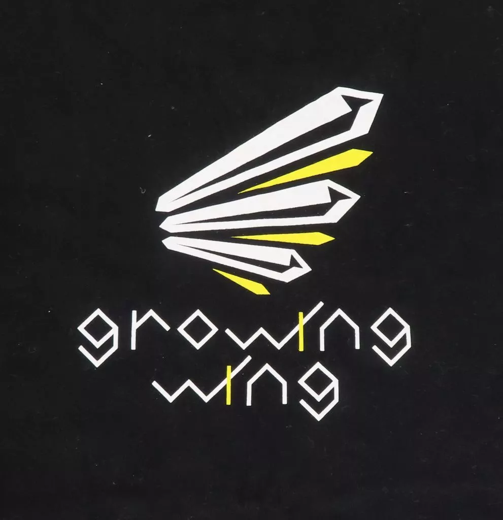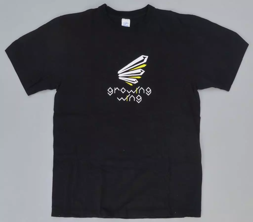 Esta es una camiseta con un logotipo en vivo que tiene una imagen de "alas" con el título en vivo "Growing Wing".