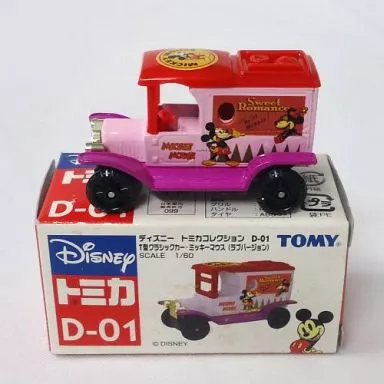 Explicación del producto : En la "Disney Tomica Collection", el clásico modelo 1/60 t Mickey Mouse Love Version (rojo x rosa x púrpura) está alineado.