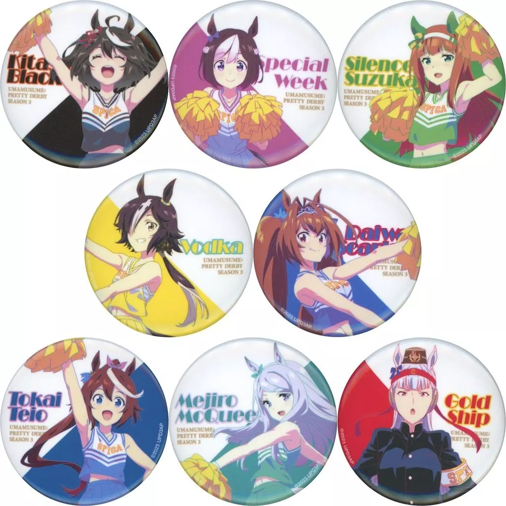 Explicación del artículo : Este artículo es un conjunto de 8 tipos de "Umamusume Pretty Derby Season 3 metal badge Collection Cheerleader ver."