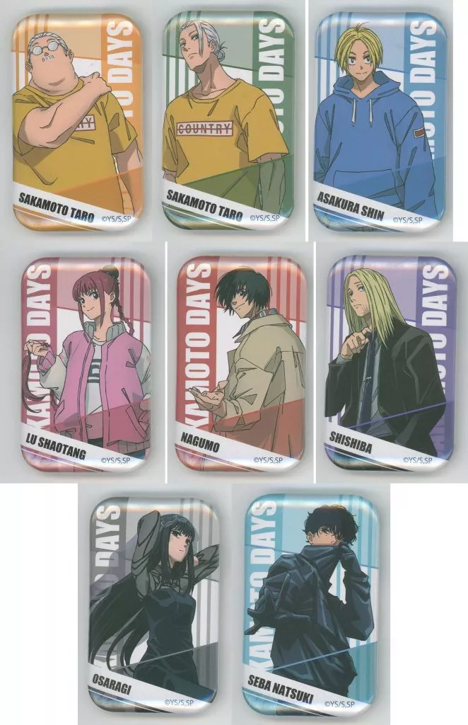 Explicación del artículo : Este artículo es un conjunto de 8 tipos de "SAKAMOTO DAYS SQUARE metal badge".